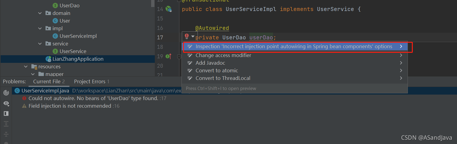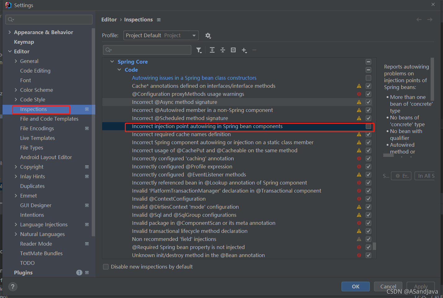 之前的选项“Autowiring for Bean Class Serial”已经没有了,目前可以使用提示中的命令