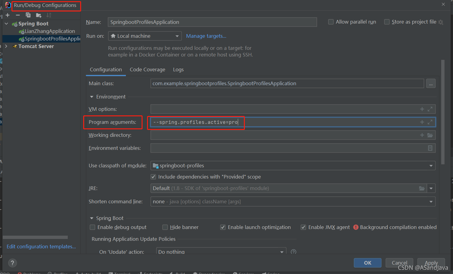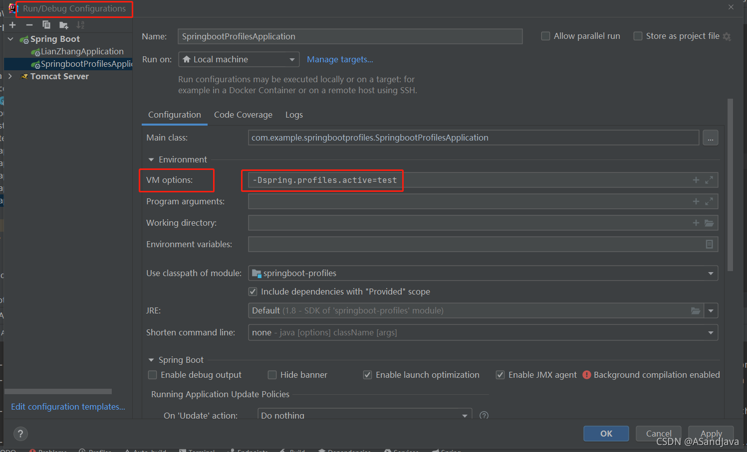 使用虚拟机参数:在VM options指定:-Dspring.profiles.active=dev