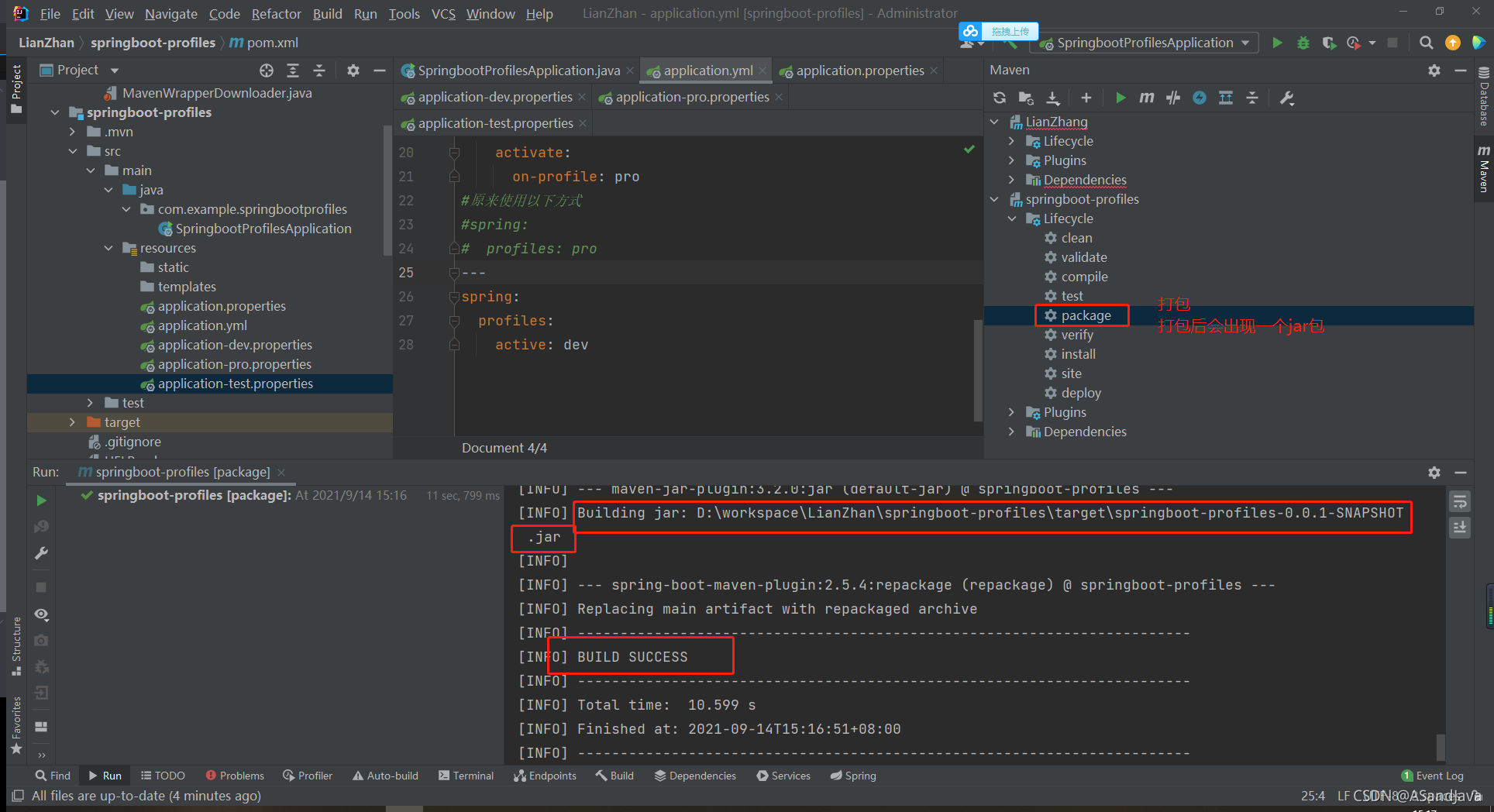 结束按Ctrl+C ,且如果选择profiles,则输入命令 --spring.profiles.active=pro