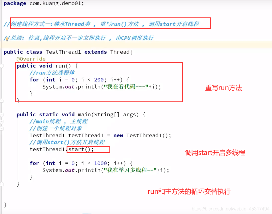 1、继承Thread类,重写run方法,Start开启多线程!