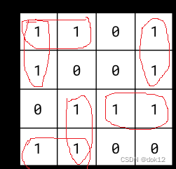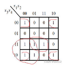 3、一个最小项可以重复使用,即只要需要,一个方格可以同时被多圈所圈;