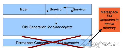 在jdk 1.8中变化最大的Perm区,永久区用MetaSpace(元数据空间)进行了替换。