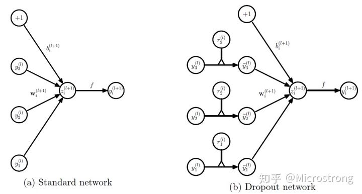 当前Dropout被大量利用于全连接网络,而且一般认为设置为0.5或者0.3,而在卷积网络隐藏层中由于卷积自身的稀疏化以及稀疏化的ReLu函数的大量使用等原因,Dropout策略在卷积网络隐藏层中使用较少。总体而言,Dropout是一个超参,需要根据具体的网络、具体的应用领域进行尝试。