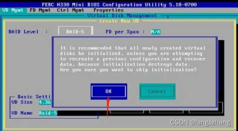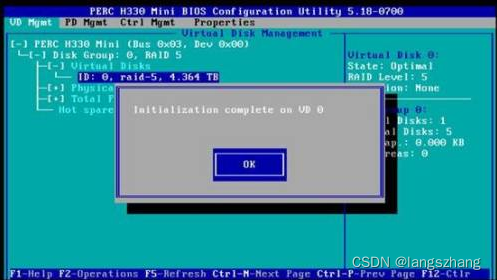 12 、初始化完成,点击:OK,完成创建raid,如图所示: