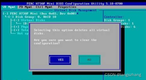 15、弹出确认删除的对话框,点击:YES,表示确认删除raid。如图所示: