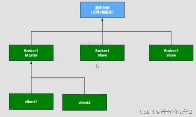 生产者将数据发送到Master消息队列节点,所有Slave节点和master共享存储数据,一旦master节点故障无法写入,则由slave节点继续服务,保证高可用,适合小型项目。但共享的数据一旦丢失,那么master和slave就没有意义了,所以出现了主从同步或者主从复制模式