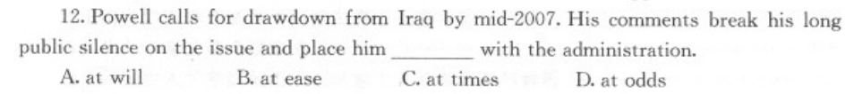at odds with 与……不和,与……争吵;