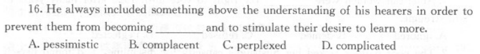 complacent 自满的;自鸣得意的;表现出自满的