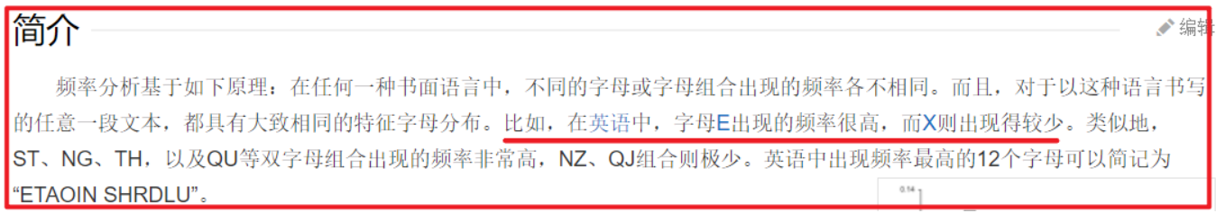 英文单词中字母出现的频率是不同的,e以12.702%的百分比占比最高,z 只占到0.074%,感兴趣的可以去百科查字母频率详细统计数据。如果密文数量足够大,仅仅采用频度分析法就可以破解单表的替换法或移位法。