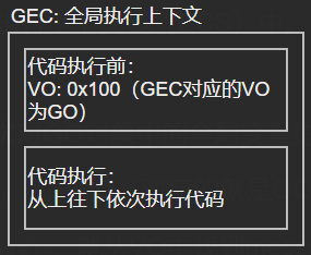 2.构建一个全局执行上下文(GEC),代码执行前将VO的内存地址指向GlobalObject(GO)。