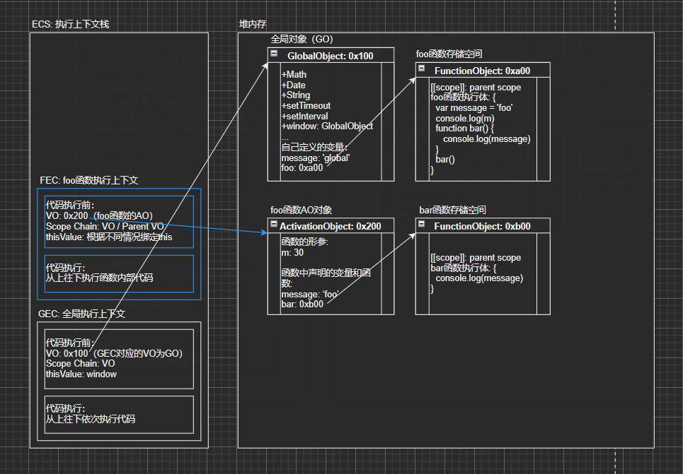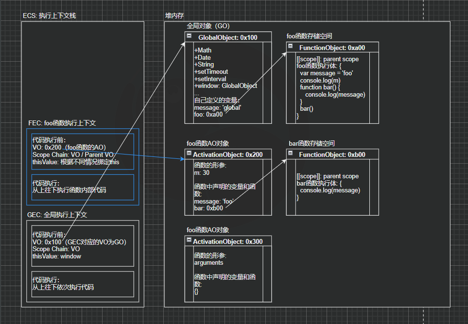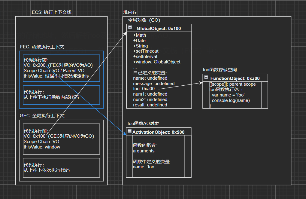 foo(),也就是需要去执行foo函数了,这里的操作是比较特殊的,涉及到函数执行上下文,下面来详细了解;