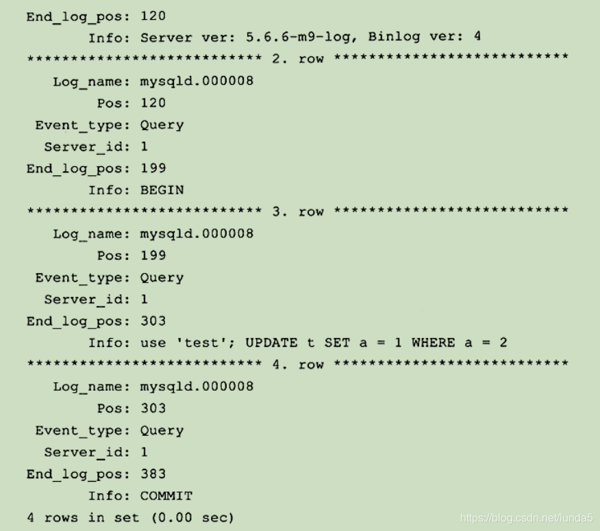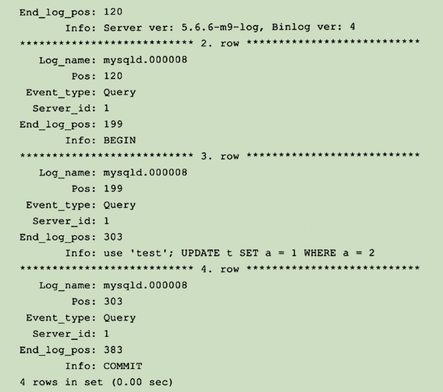 记录所有非查询类操作,首先看一下二进制日志内容如下: