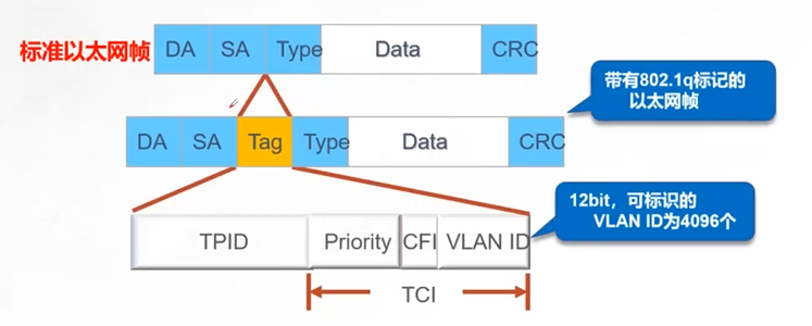 作用:用于识别可放心行的VLAN标签。