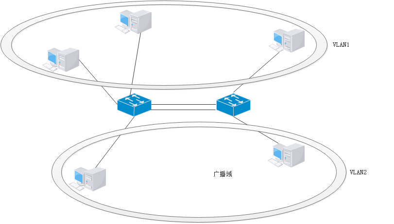 将网络从逻辑上划分为若干个小的虚拟网络,即VLAN。VLAN工作在数据链路层。一个VLAN就是一个交换网络,其中所有的用户都在同一个广播域中,各VLAN通过路由设备连接通讯。