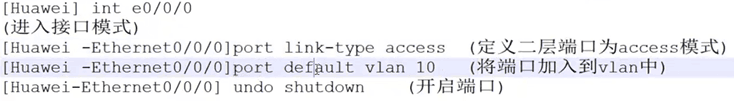 [Huawei -Ethernet0/0/0]port link-type trunk (定义二层端口为trunk模式)