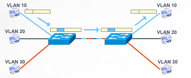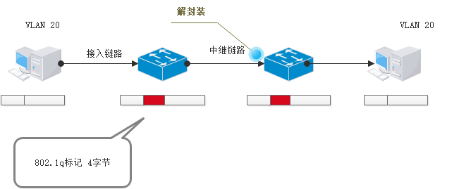 交换机给往其他交换机的数据打上VLAN标识