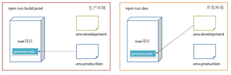 | .env.production | 生产环境 | 当运行npm run build:prod 的时候会以此文件为配置文件,这个文件中可以定义针对开发环境的环境变量 |