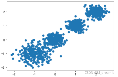 # 簇中心在[-1,-1], [0,0],[1,1], [2,2], 簇方差分别为[0.4, 0.2, 0.2, 0.2]