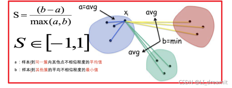 求出所有样本的轮廓系数后再求平均值就得到了平均轮廓系数。