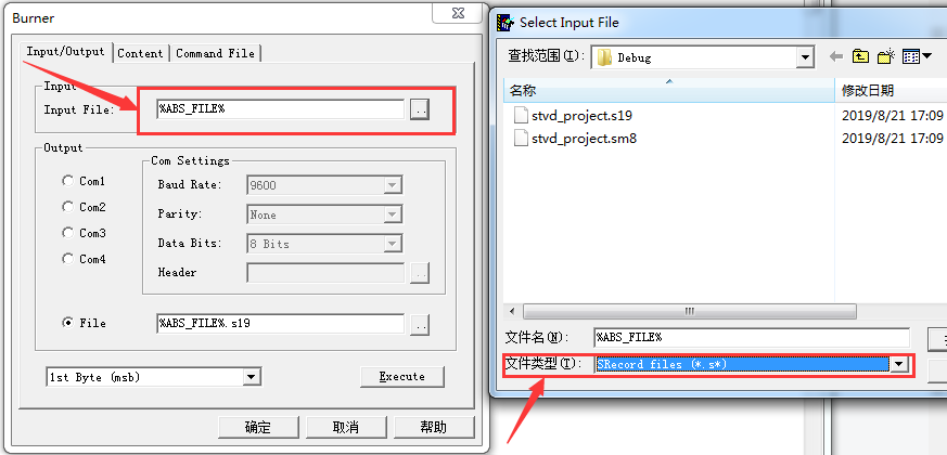 使用STVD开发时,编译后产生的是 .s19 文件,与Keil 和 IAR常见的.hex .bin文件不同,那么如何将.s19文件转换为常见的文件格式呢?