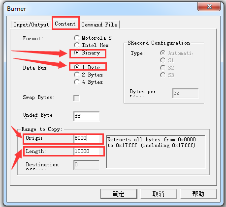 1、Format :跟第三步中目标文件的格式相同,我这里是转换为bin文件,所以选择Binary
