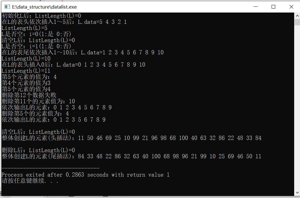 printf("ListLength(L)=%d \n",ListLength(L)); //返回线性表中的个数