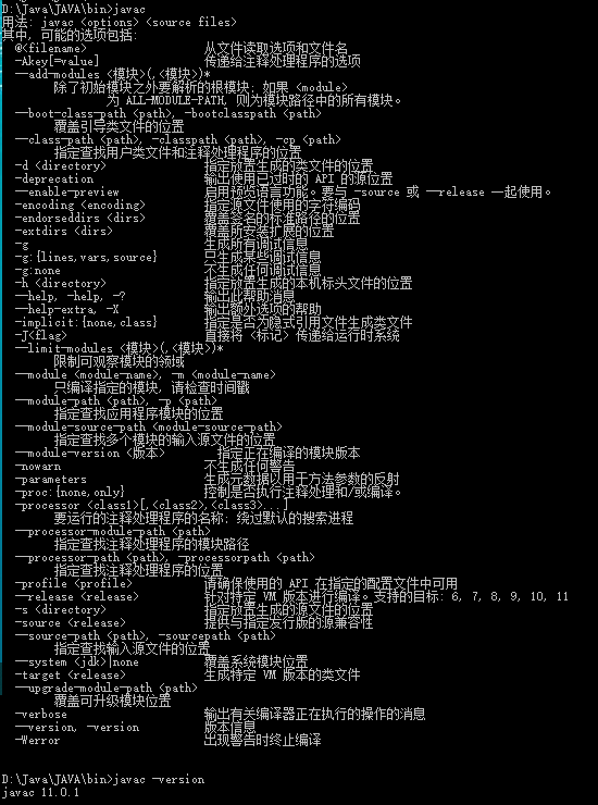 这里列出了很多的参数,同样用javac -参数的形式 获取相关信息或执行这些命令。