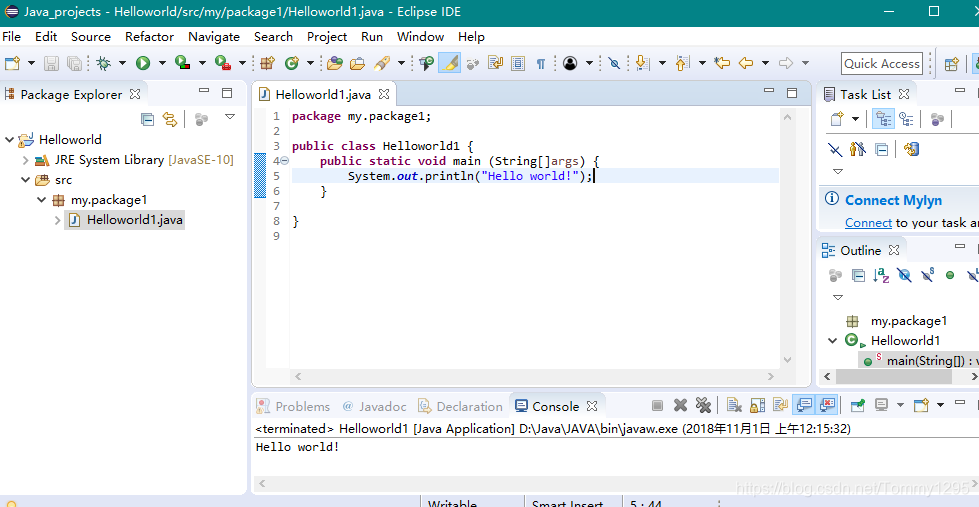 好了,今天就到这里,我写出了我的JAVA处女程序,Helloworld!