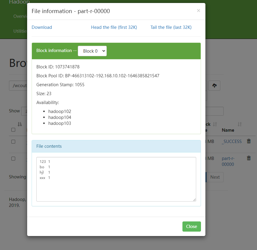 可以发现这样是用我们的自己写的代码执行的mapreduce测试。
