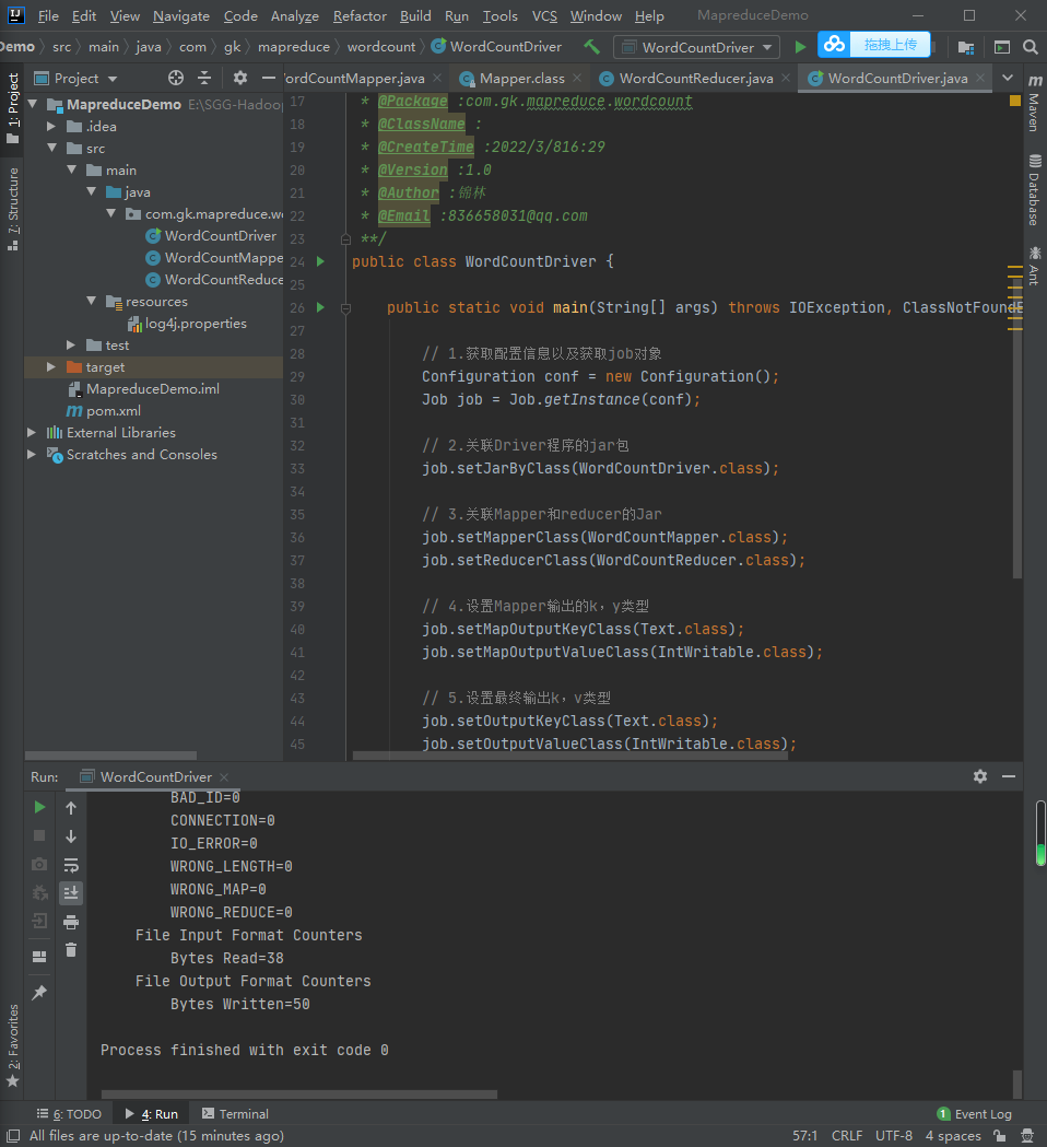 hadoop jar MapreduceDemo-1.0-SNAPSHOT.jar com.gk.mapreduce.wordcount2.WordCountDriver /wcinput /wcoutput