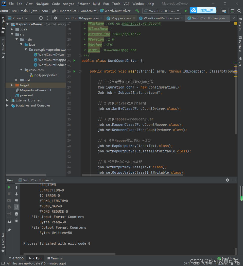 然后执行WordCountDriver下的main方法