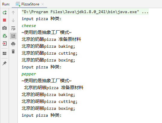 System.out.println("input pizza 种类:");