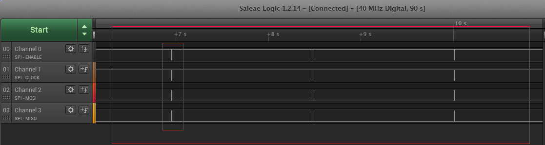 这是局部放大后的波形,可见字节和字节之间已经没有文章开头所说的间隔,实现了连续传输。