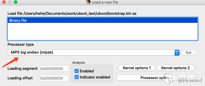 接下来就是通过dd或者其他程序把二进制流从uboot中分离出来,再丢到ida中。先来看看bootstrap,首先指定相应的CPU类型,比如对于上例,则需要设置MIPS大端。
