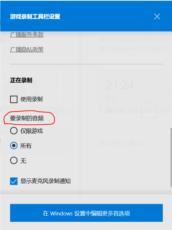 使用Windows10自带录屏功能时希望录制上系统内部所播放的声音该如何操作