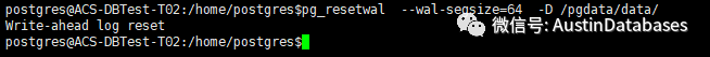 2 使用 pg_resetwal 命令将 wal size 重新进行设置