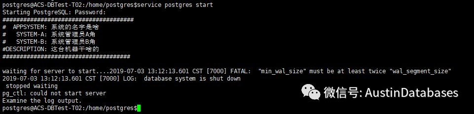 错误信息提示 min_wal_size 必须是 wal_segment_size 的两倍