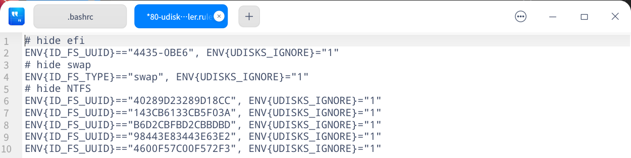 sudo deepin-editor /etc/udev/rules.d/80-udisks-installer.rules