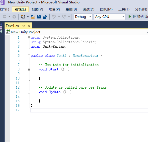 打开脚本之后,一般会跳转到编译器(Visual Studio 或者 Mono),如下: