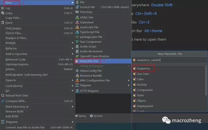 首先我们需要新建一个PlantUML文件,选择时序图;