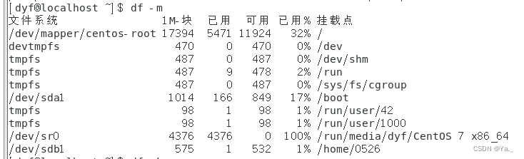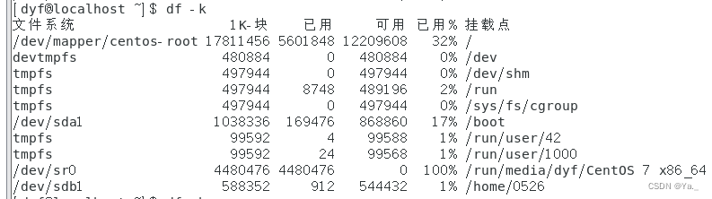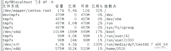[用法]:df [-ahHiklmPv] [目录或文件名]