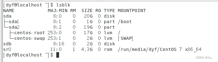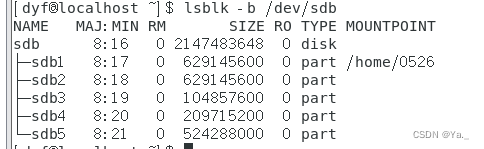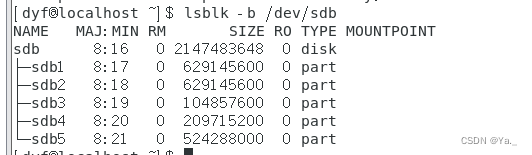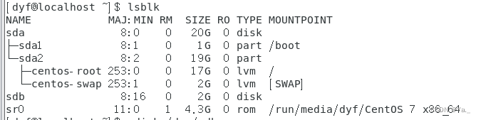 eg:分区前后、挂载前后使用lsblk查看变化。