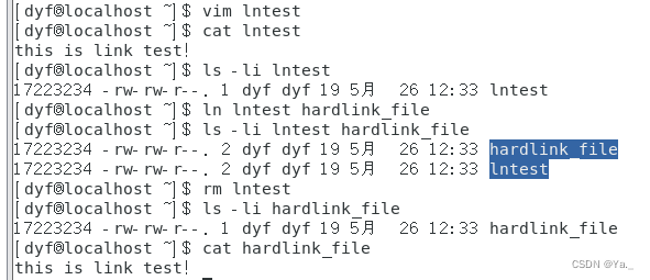 eg:创建硬链接①修改文件内容,查看变化,②删除源文件查看变化