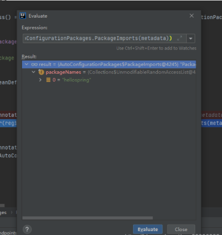 (String[])(new AutoConfigurationPackages.PackageImports(metadata)).getPackageNames().toArray(new String[0])是为我们的包名