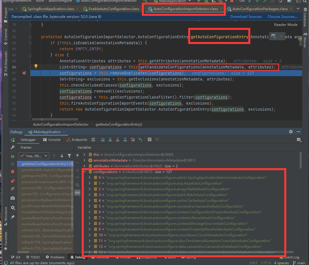 1. 利用getAutoConfigurationEntry(annotationMetadata)为容器中批量导入组件,他里面的核心的步骤2