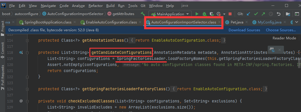 3. 而 getCandidateConf igurations( annotationMetadata, attributes )是怎么确定加载哪些组件的讷?查看源码可知,内部使用 SpringFactoriesLoader(即spring的工厂加载器)