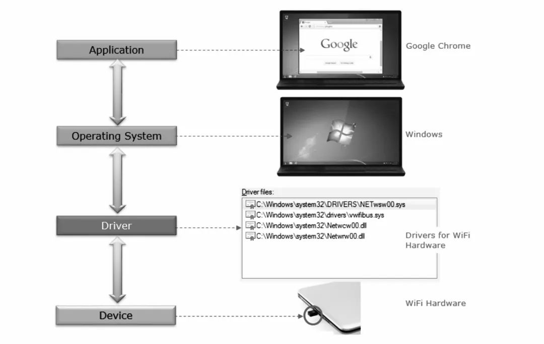 57. 驱动程序(device driver):设备驱动程序,简称驱动程序(driver),是一个允许高级别电脑软件与硬件交互的程序,这种程序创建了一个硬件与硬件,或硬件与软件沟通的接口,经由主板上的总线或其它沟通子系统与硬件形成连接的机制,这样使得硬件设备上的数据交换成为可能。