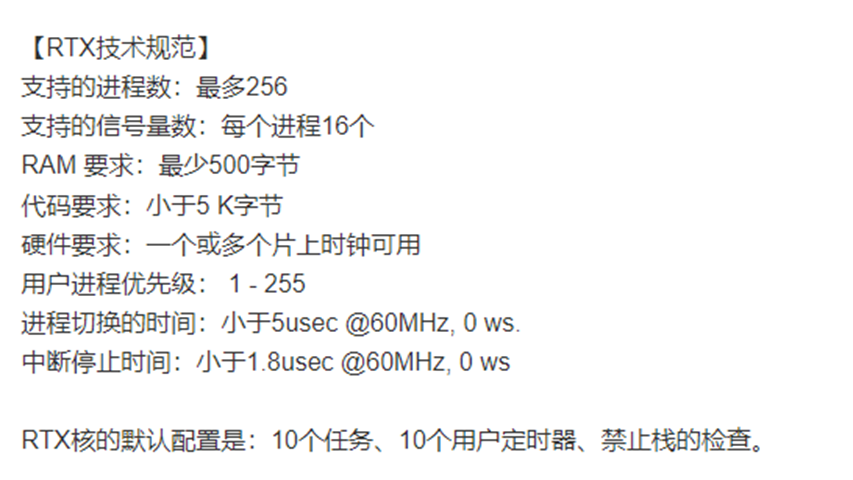 - RTX核是在os_idle_demon()空闲任务(当没有其他任务处于就绪态时)中初始化空闲模式的。当RTX核时间片中断(或其他中断)发生时,微控制器将重新开始执行程序。