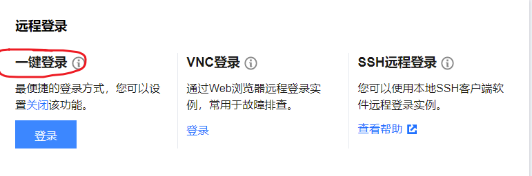 首先,在腾讯云控制台,选择下面的一键登录,登录到你的服务器的linux面板。