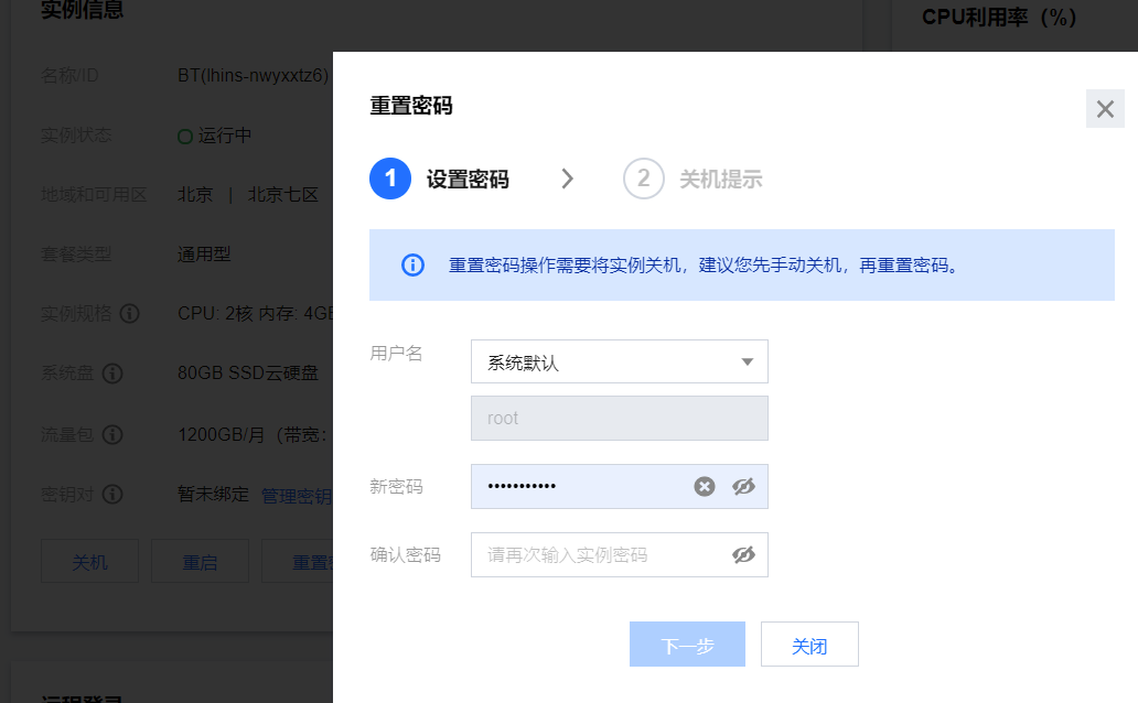 在腾讯云服务器控制台,设置自己服务器的账号和密码并牢记。